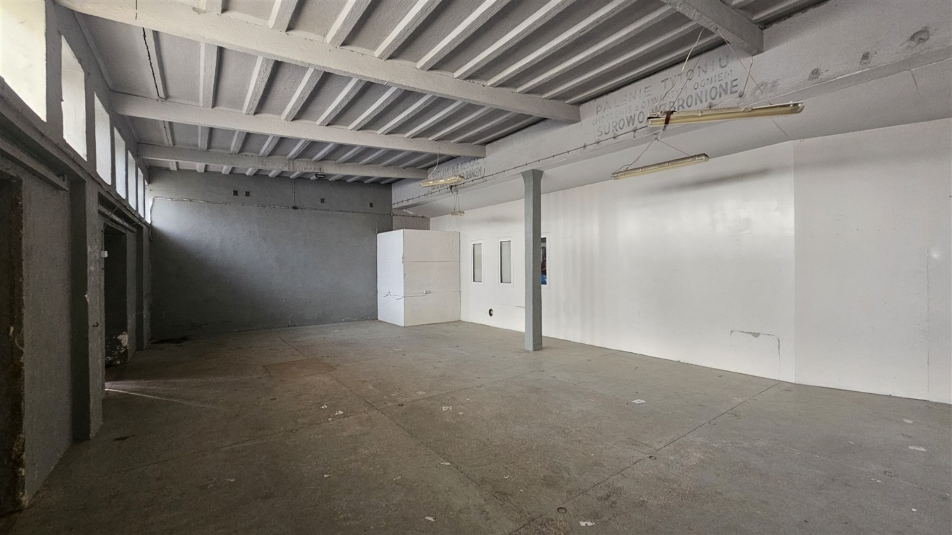 Stan budynku: Obiekt murowany, rampa na wysokość 1,15m i podestem do rozładunku. Hala szerokości 7,3m i długości 12,0m. Na podłodze posadzka betonowa. Wysokość w obiekcie od 3,6m do 3,9m ( do belki 3,25m). Bramy dwie o wymiarach 2,0x2,25m. Wejście zadaszone.