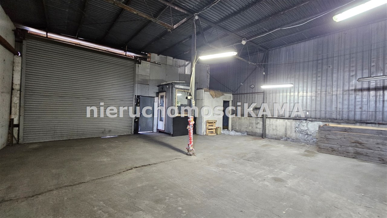 Stan obiektu: Posadzka betonowa. Wysokość w obiekcie od 3,7m do 4,3m. Bramy wjazdowe, rolowane na teren hali dwie o wymiarze 3,6x3,5m. Hala mniejsza szerokości 9,6m i długości 9,7m większa o szerokości 9,6m i długości 14,3m. Obiekt z zewnątrz monitorowany.