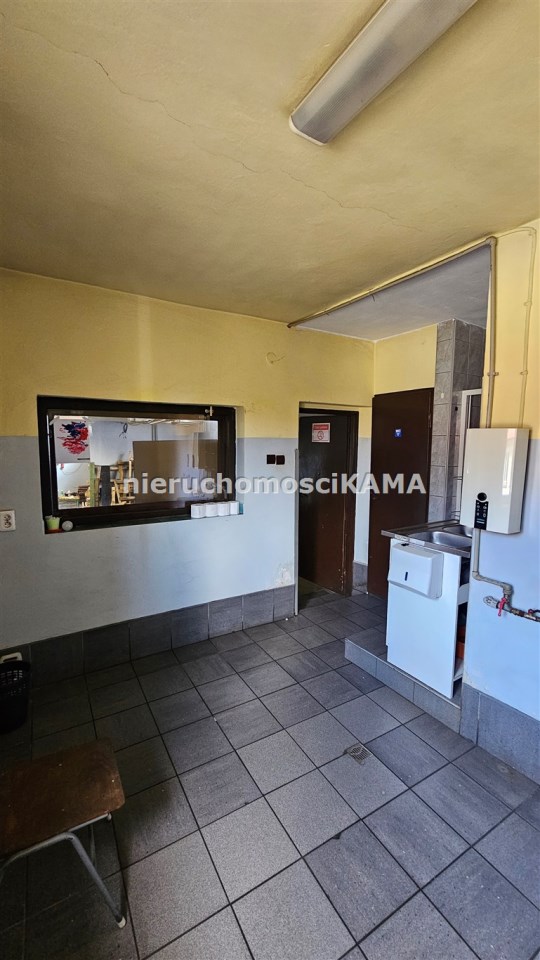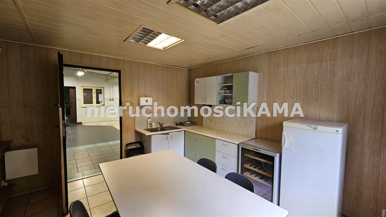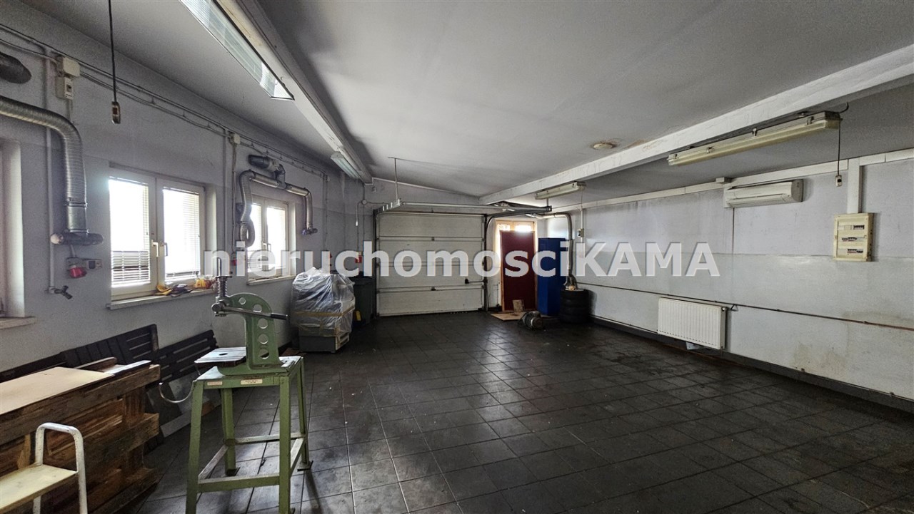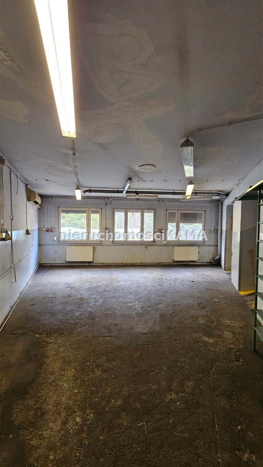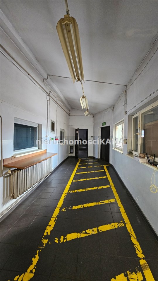 Stan techniczny: Budynek murowany, na podłodze częściowo wylewka, częściowo płytki. Dwie bramy wjazdowe: na halę główną 2,35mx2,0m do magazynu 2,5mx2,2m, plac parkingowy mieszczący 6 miejsc postojowych. Posesja ogrodzona, brama. Wysokość w obiekcie zróżnicowana (spadek dachu) na głównej hali od 3,25m do 3,78m w magazynie od 2,55m do 3,0m. Rozprowadzona instalacja alarmowa i sprężonego powietrza, wentylacja mechaniczna, kompresor. Światłowód w obiekcie.
