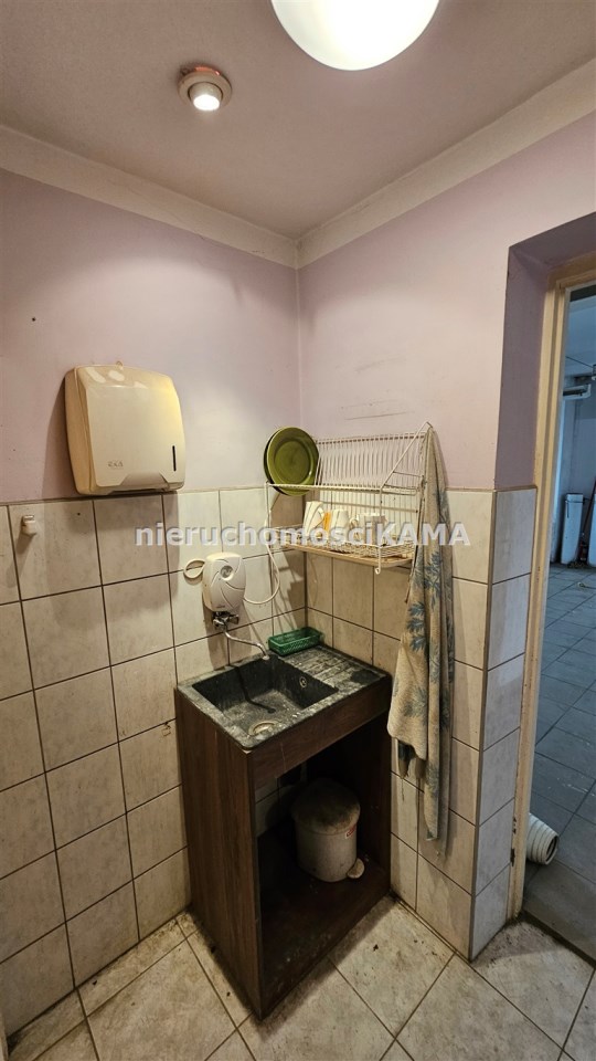 Proponuję do wynajęcia lokal usługowo-handlowy o łącznej powierzchni 107,5m2 położony w Centrum. Obiekt składa się z sali sprzedaży 57,35m2, biura 17,23m2, warsztatu 36,34m2, oraz pomieszczenia socjalno-sanitarnego. Do obecnej chwili w lokalu prowadzony był niewielki warsztat naprawczy precyzyjnego sprzętu ale również może spełniać rolę małego magazynu, sklepu czy szwalni. Do lokalu prowadzą cztery stopnie dwa na zewnątrz i dwa w środku. Teren ogrodzony, zamykany, plac utwardzony z możliwością parkowania samochodów na placu.