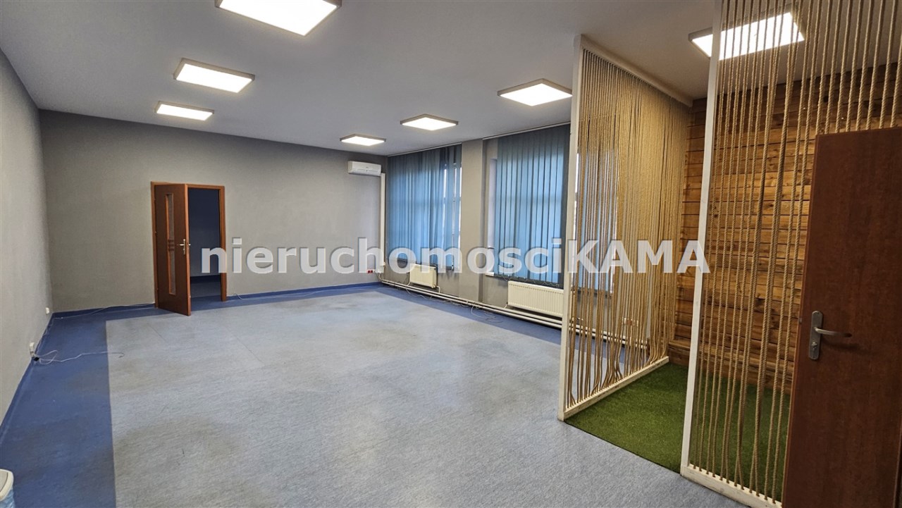 Proponuję do wynajęcia pomieszczenia biurowe o łącznej powierzchni 80,35m2 położone na drugim piętrze obiektu usługowo-handlowego. Lokal składa się z trzech wydzielonych pomieszczeń (16,0m2, 16,5m2, 47,85m2), w tym dwa z wejściem z korytarza oraz jest z dostępem do ogólnodostępnych sanitariatów i kuchni. Nadaje się na siedzibę, przedstawicielstwo firmy. Zjazd do budynku bezpośrednio z ulicy, przy obiekcie parking. Bardzo dobra lokalizacja ścisłe Centrum.