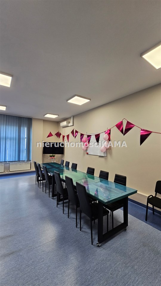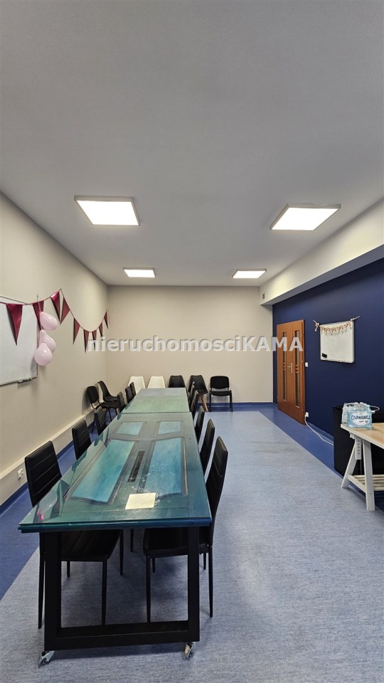Opis pomieszczeń: Na ścianach gładzie gipsowe, na podłogach wykładzina PCV, oświetlenie ledowe. Lokal posiada doprowadzoną instalację światłowodową i klimatyzację. Nowe okna PCV. Ogrzewanie centralne miejskie w budynku. Wymiary lokalu: 4,3x7,95m. Wysokość w lokalu: 3,0m.